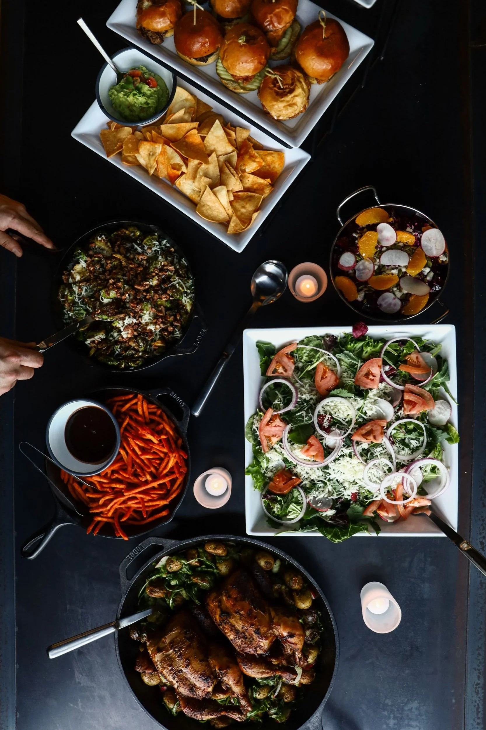 Choose from family-style menus or passed bites and food stations